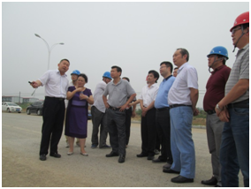 吳桂和一行認真聽取了項目負責人對工程概況、項目規劃、工期進度、安全質量以及文明施工等方面的情況匯報,并在相關人員的指引下,對施工現場進行了全面檢查。
